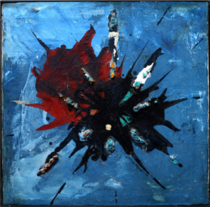 These are largish canvases painted in oil, using mainly primary colours and sinewy black lines. The elements of Nature portrayed my thoughts and feelings strongly, so I used them lavishly.