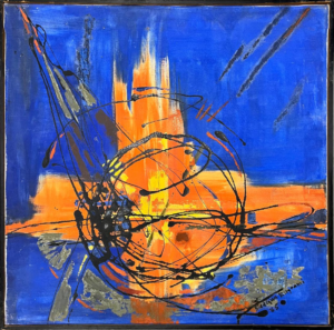 After formal training in art school, I found I had a leaning towards the abstract. I could portray my thoughts and emotions by translating them into lines and colours. ‘Movement’ became an essential part of my work and ‘space’ was there to release the forces from within.