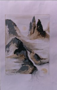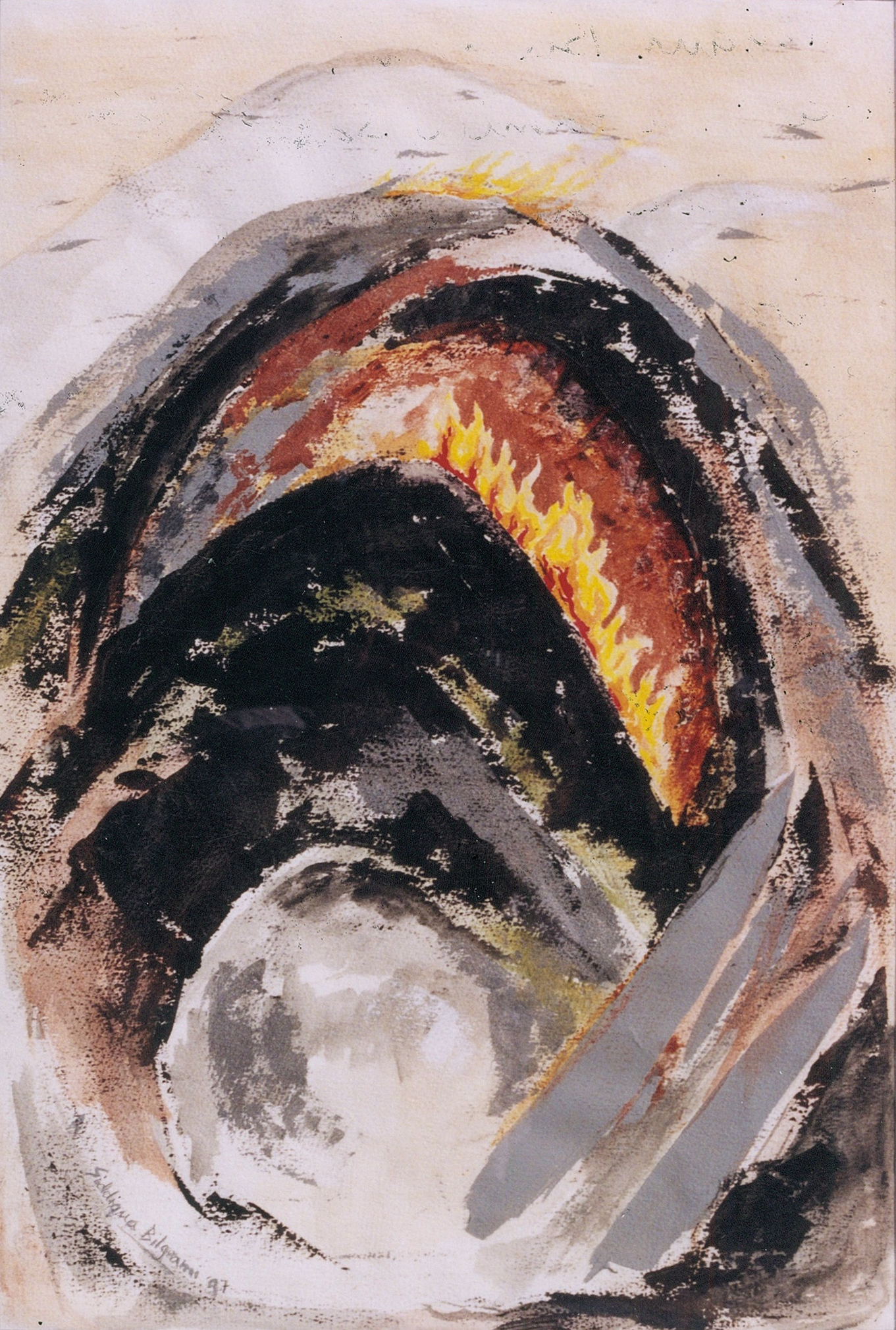 Here I have tried to portray personal relationships, once thought to be ‘strong as a rock’, may prove to be otherwise, as in ‘Cleaven Rock…’; or eruption of ‘Lava’ where emotions find an outlet.