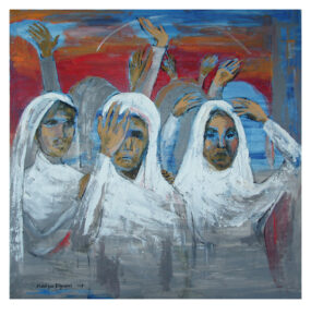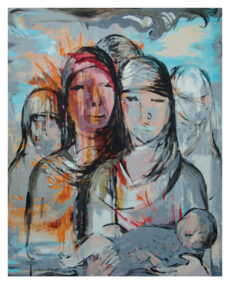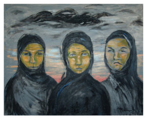 The ‘Iraq War’ suddenly brought home to me the plight of women in a war situation, and I empathized with the plight of women during other calamities as well. Woman is fragile, and easily hurt, while man and circumstances can create havoc to her life and being. Hence came these paintings and a poem in English and also one in Urdu, which speak of the Iraq war.